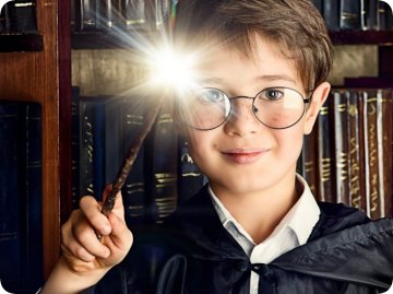 Famfrpál, létání na koštěti, rodilí mluvčí, a magický svět Školy čar a kouzel.